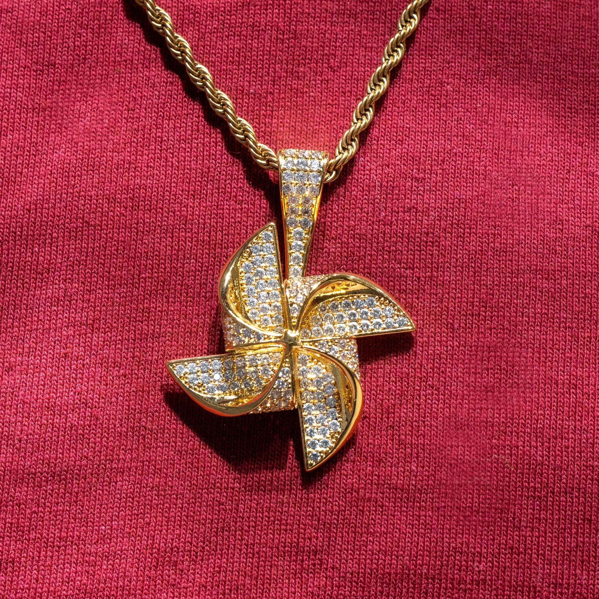 Gold Plated Pinwheel Pendant That Weighs 12.7 Grams. The Length Of The Pendant Is 1.85 Inches And The Width is 1.4 Inches.